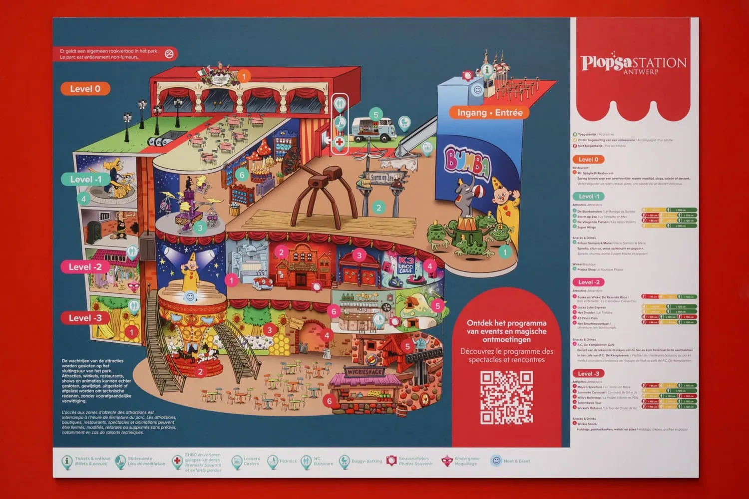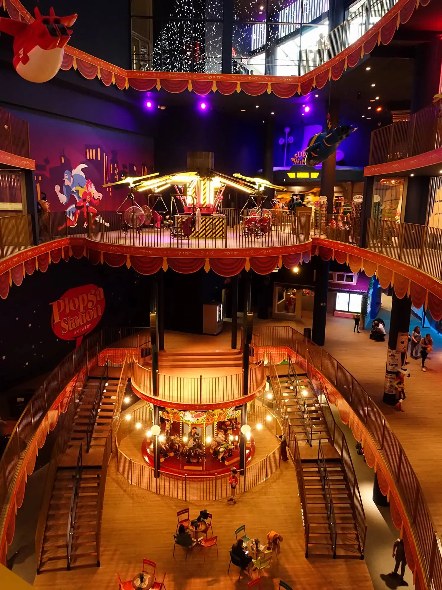Plopsa Station Antwerp is located at the backside of Antwerpen-Centraal railway station. It is owned by the Plopsa Group and features rides based on their theatre and television characters, as well as some external IPs, all taken from comic books. This is because the park originally operated as Comic Station Antwerp.