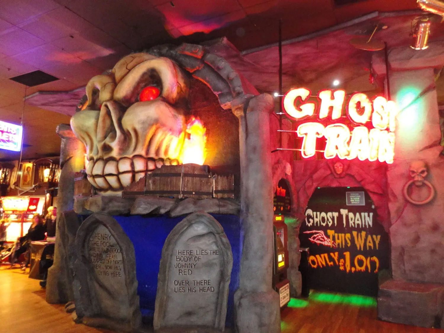 A ghost train formerly located on the ground floor. It was moved to the first floor and revamped as the Pirates Quest Ghost Train in 2010.