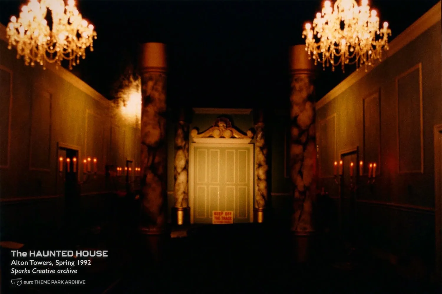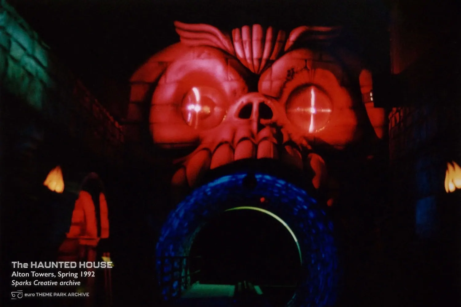 The Haunted House was a large haunted dark ride. The ride used a bespoke ride system developed by Mack, using variable speed cars that could load endlessly in the station but separate and travel individually through the ride.