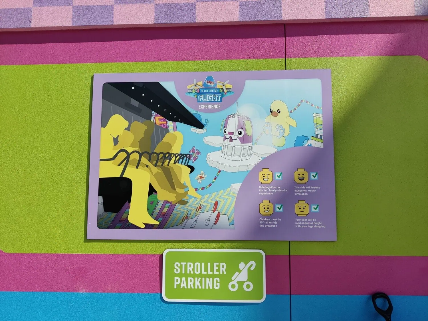 LEGO Movie - Masters of Flight was the first flying theatre in a Legoland park. It was followed by two other flying theatres with the same theme and film: Legoland Billund (Emmet's Flying Adventure - Masters of Flight, 2021) and Legoland California (Emmet's Flying Adventure Ride, 2021).