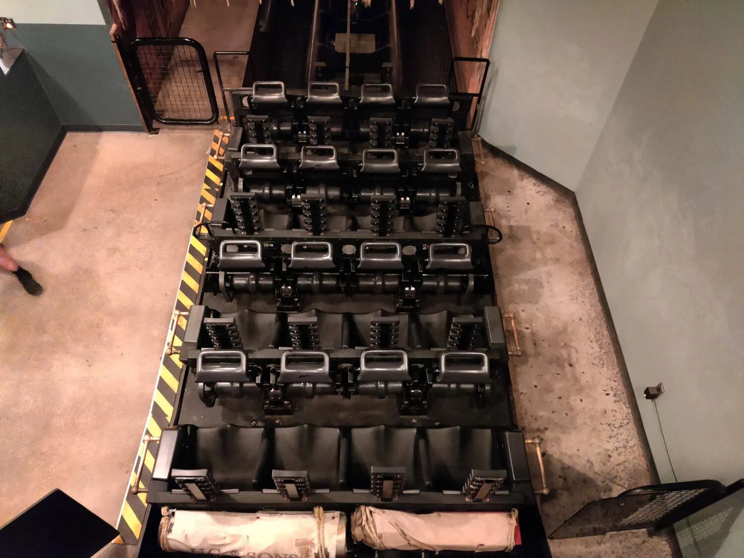 Revenge of the Mummy is a combination of a dark ride and a rollercoaster, built entirely indoors, based on the film The Mummy (1999). Riders are invited into the Museum of Antiquities where they join the film set of the fictional film 'Revenge of the Mummy'. They board the ride vehicles which start of in a dark ride section, where it becomes clear that the fictional curse from the film is actually real. Powered by the curse, the coaster train is launched into the roller coaster part of the ride.