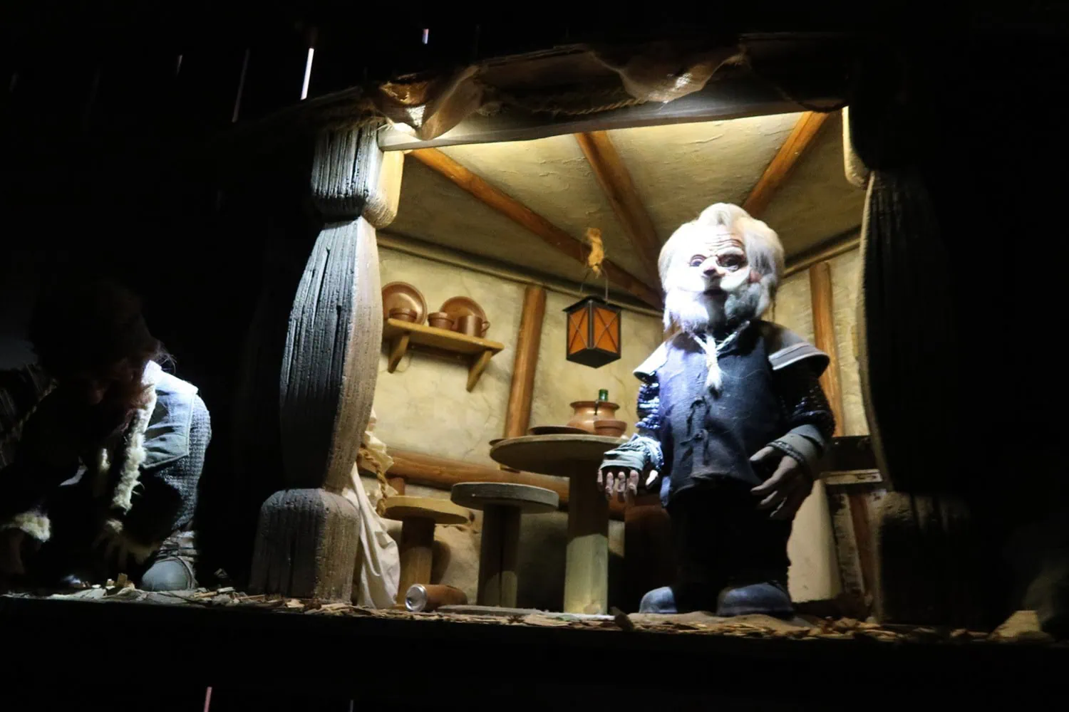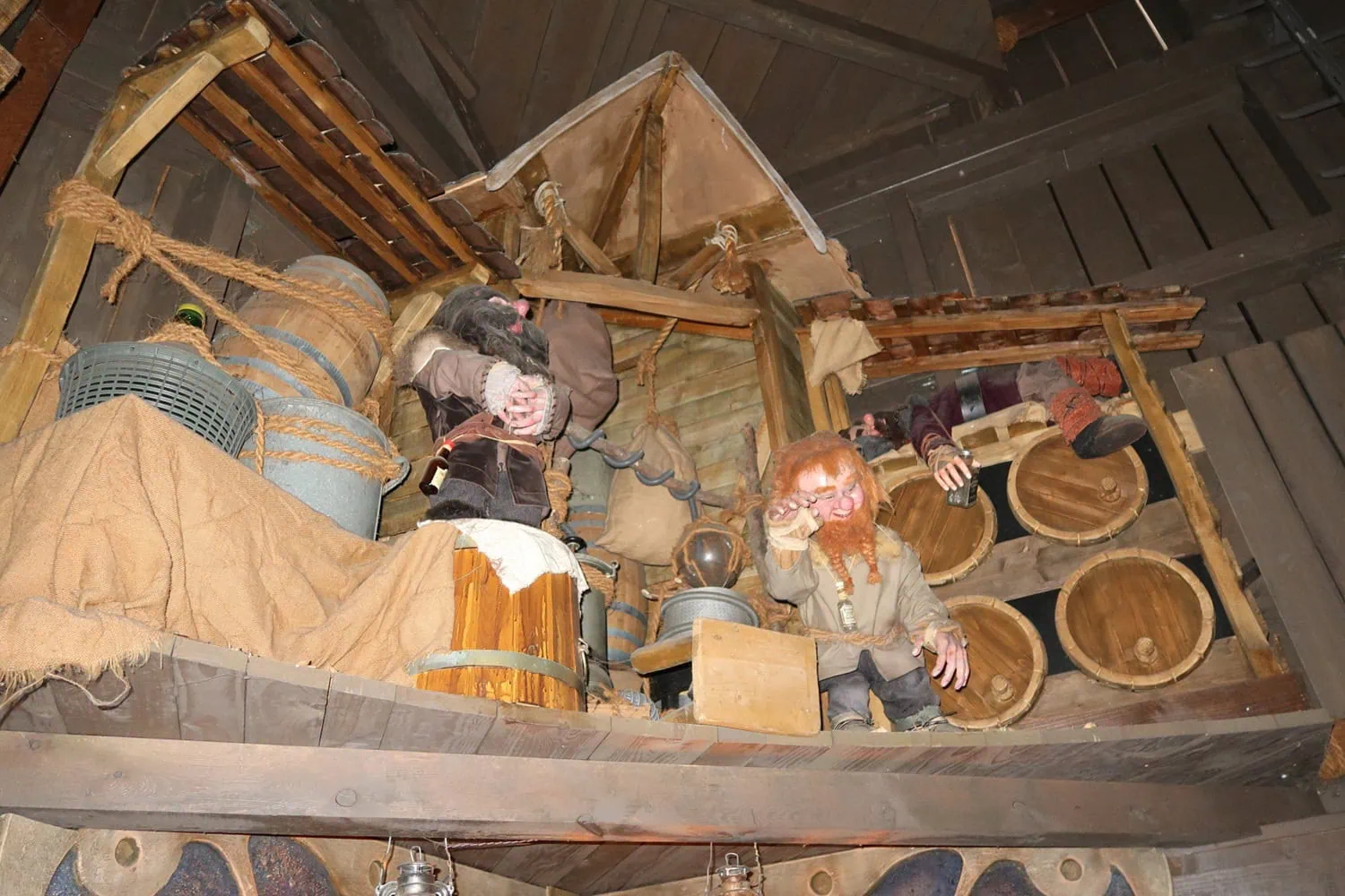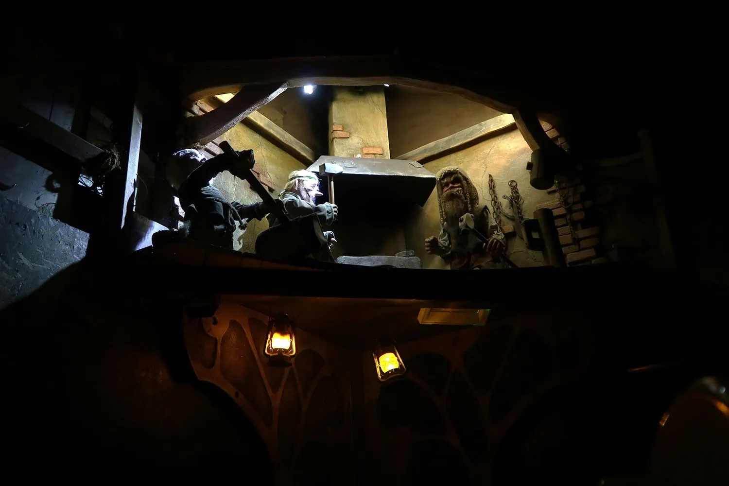 Inside the tower, 12 small scenes are placed which light up when the gondola reaches the height of that specific scene. The scenes depict the trolls working. During the entire time, science-fiction-esque music can be heard.