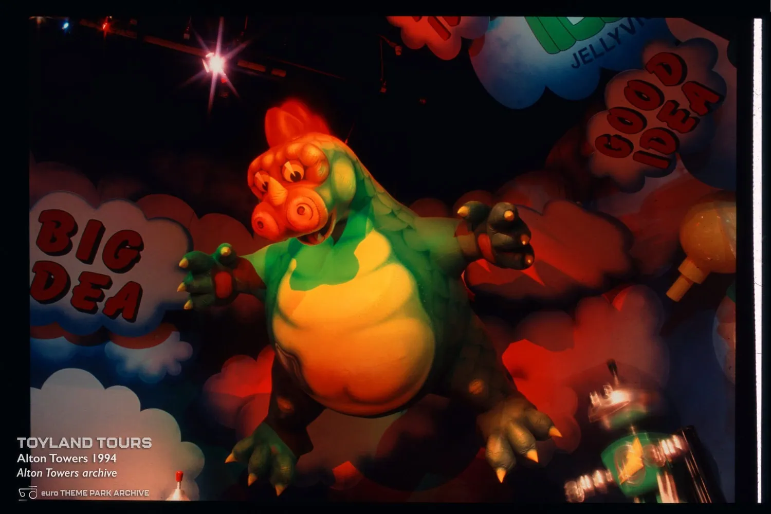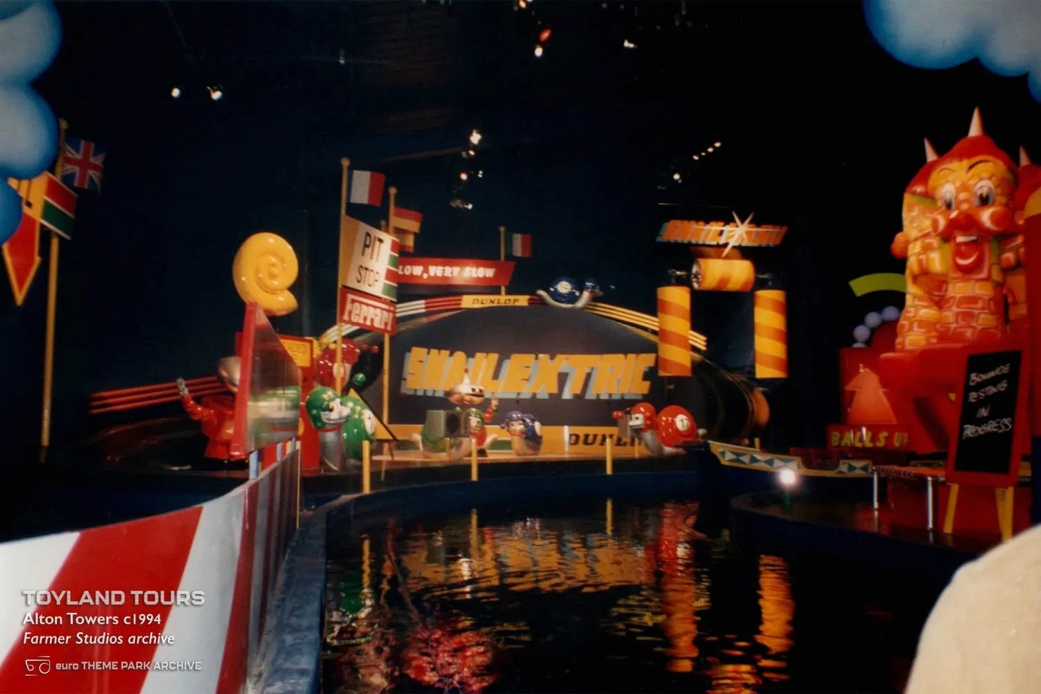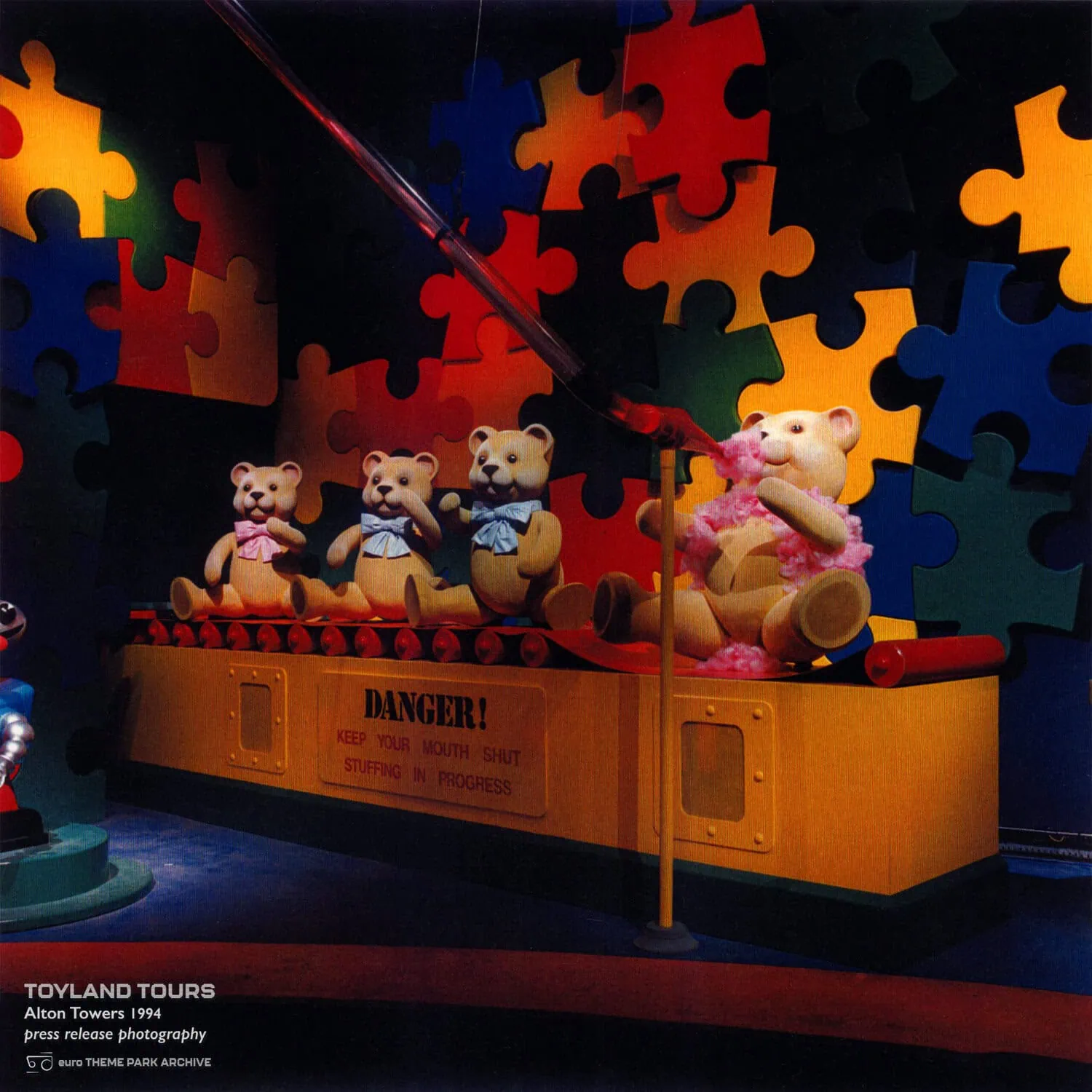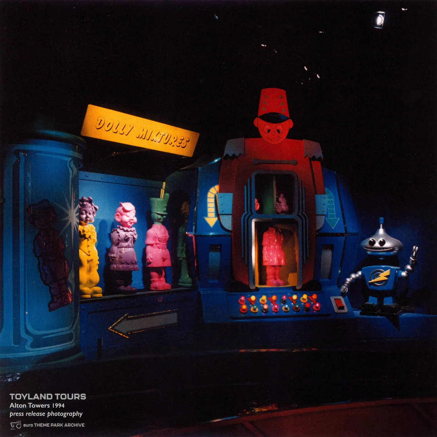 Toyland Tours opened in 1994, replacing Around The World In 80 Days. In turn it was replaced by Charlie and the Chocolate Factory: The Ride in 2006 and the Alton Towers Dungeon in 2019.