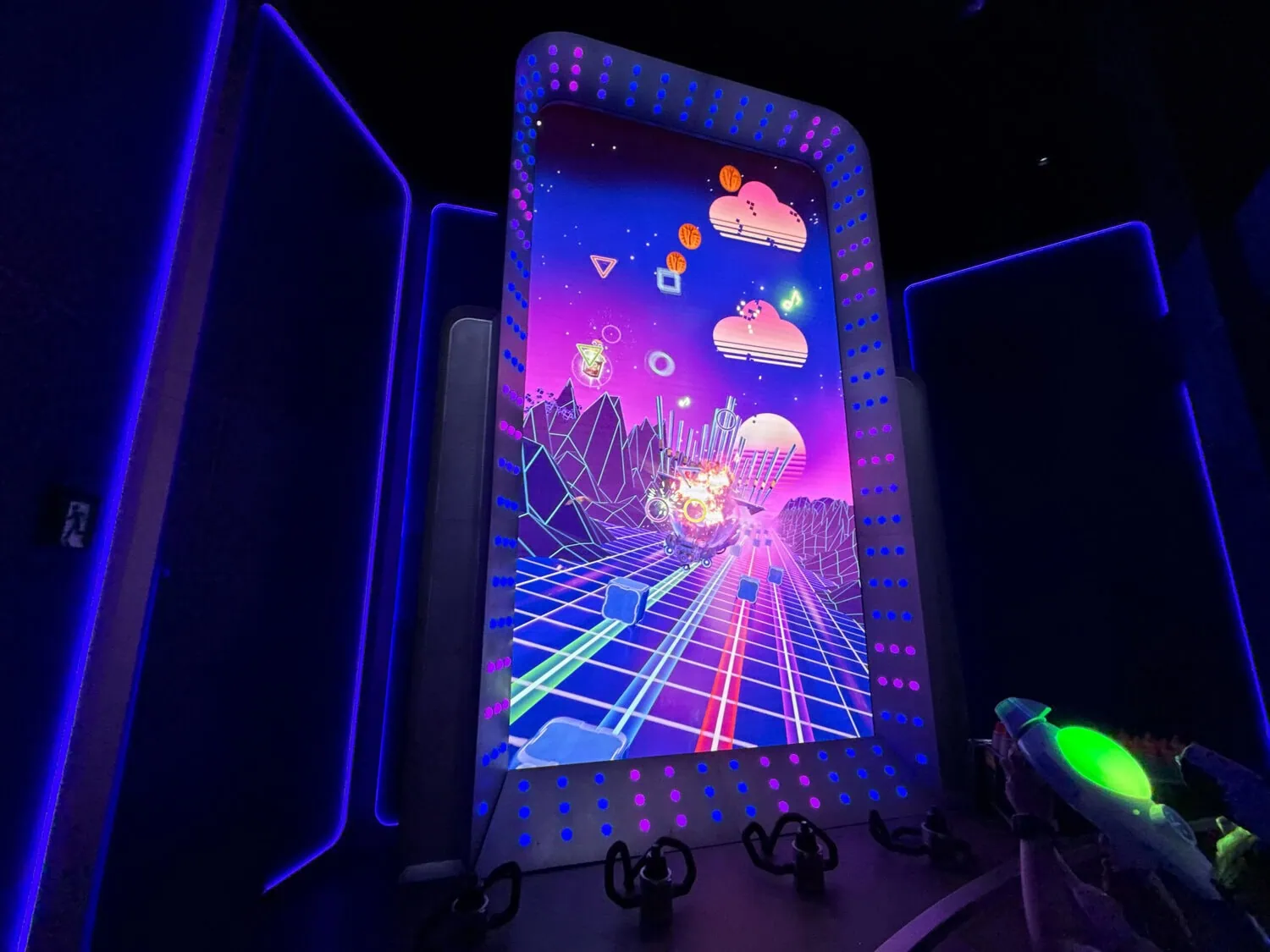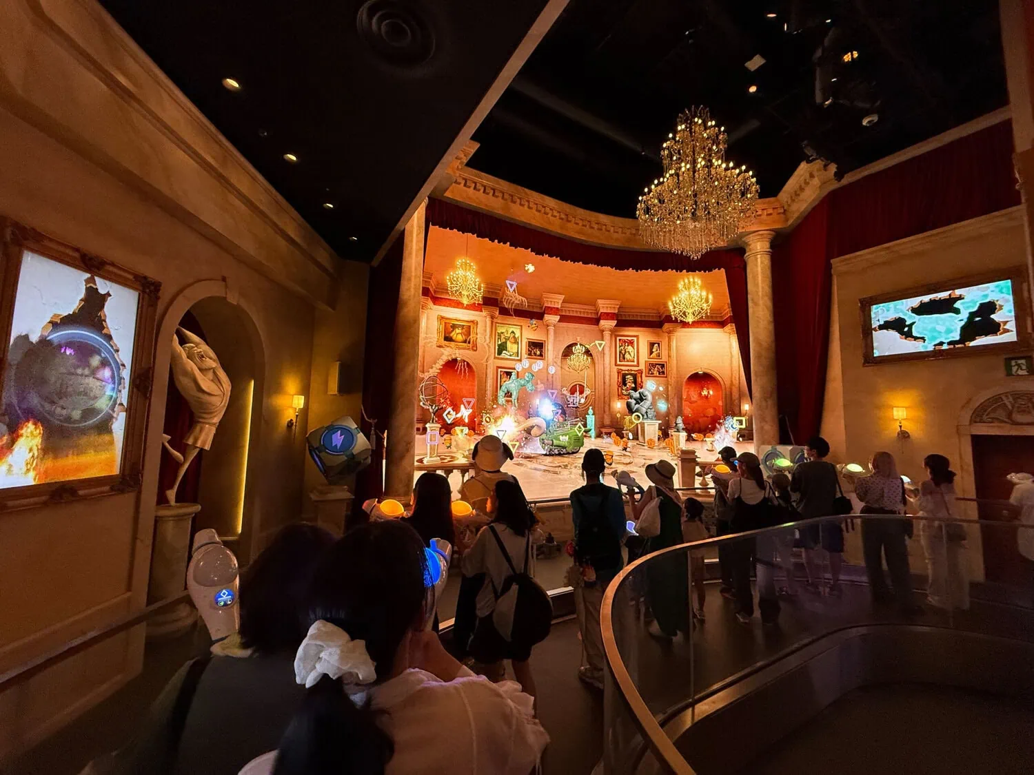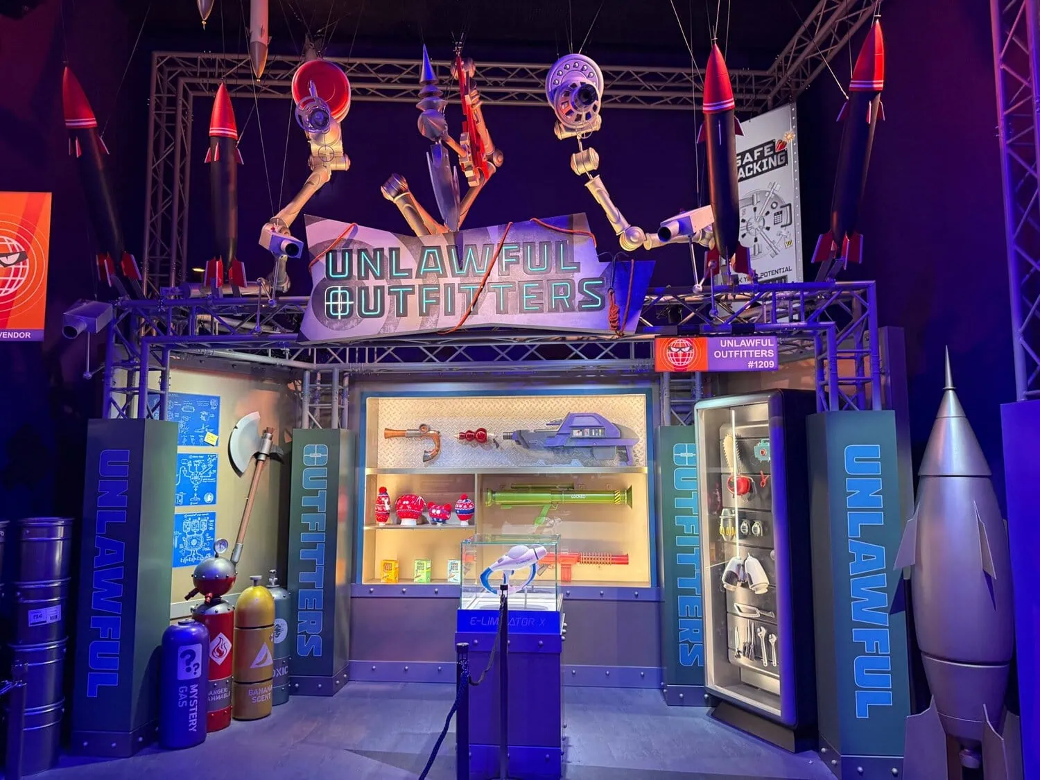 Villain-Con Minion Blast is a stand-up interactive dark ride. It uses an conveyor belt system to transport guests through a fictional Villain-Con. During the ride the well known minions wreck chaos all around.