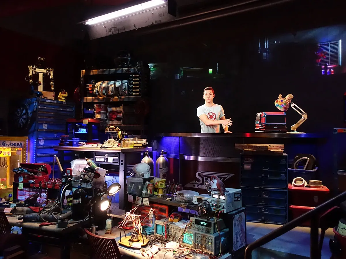 In WEB Slingers: A Spider-Man Adventure, guests are invited into the workshop of W.E.B. (Worldwide Engineering Brigade). Here they meet Peter Parker (alias Spider-Man), who shows riders new inventions, like the WEB Slinger-vehicles and self-replicating Spider-Bots. Unfortunately, the bots are out of control and replicating in large numbers. Guests are asked to help Spider-Man catch and distroy the Spider-Bots. On board of the WEB Slinger-vehicles, riders have the ability to throw webs, just like Spider-Man does. A special interactive system registers body movement and enables riders to throw webs by extending their arms and flicking their wrist.